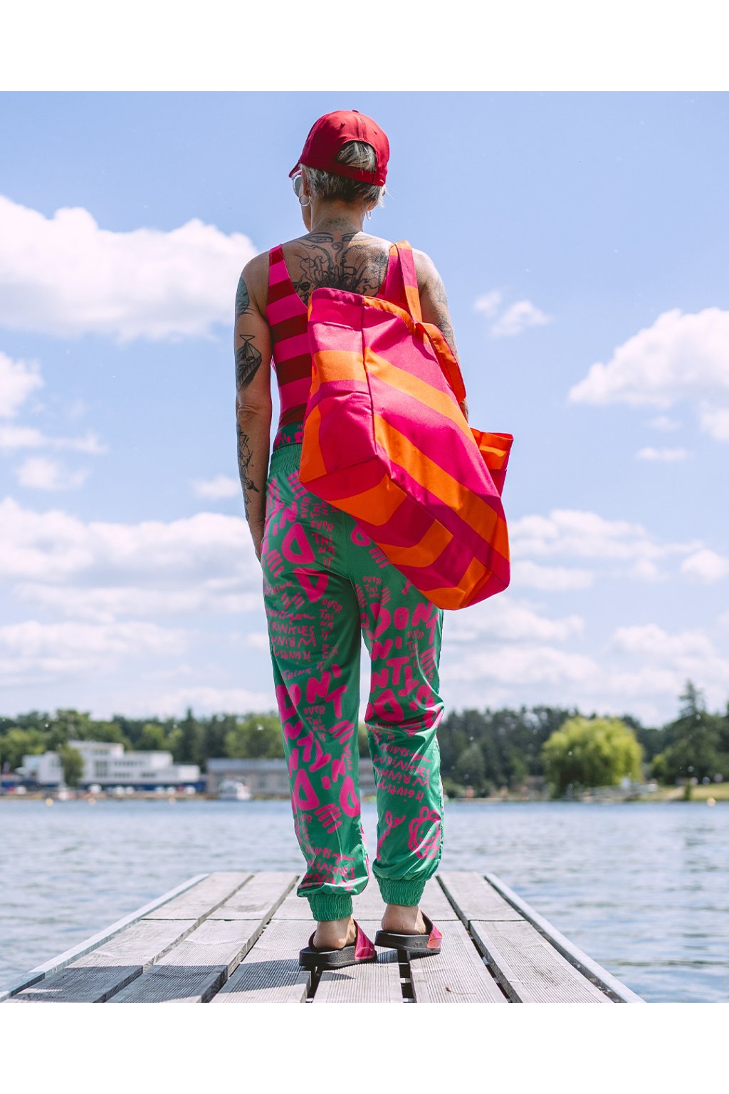 - Objemovka bez zipu – protože styl „naházím a běžím“ je životní. Ne, neuzavírá se. A víš co? To je na tom to nejlepší. Je prostorná, otevřená a připravená na všechno – od mokrých plavek přes meloun až po růžové ploutve. Hodí se pro každou, kdo je pořád na cestě.