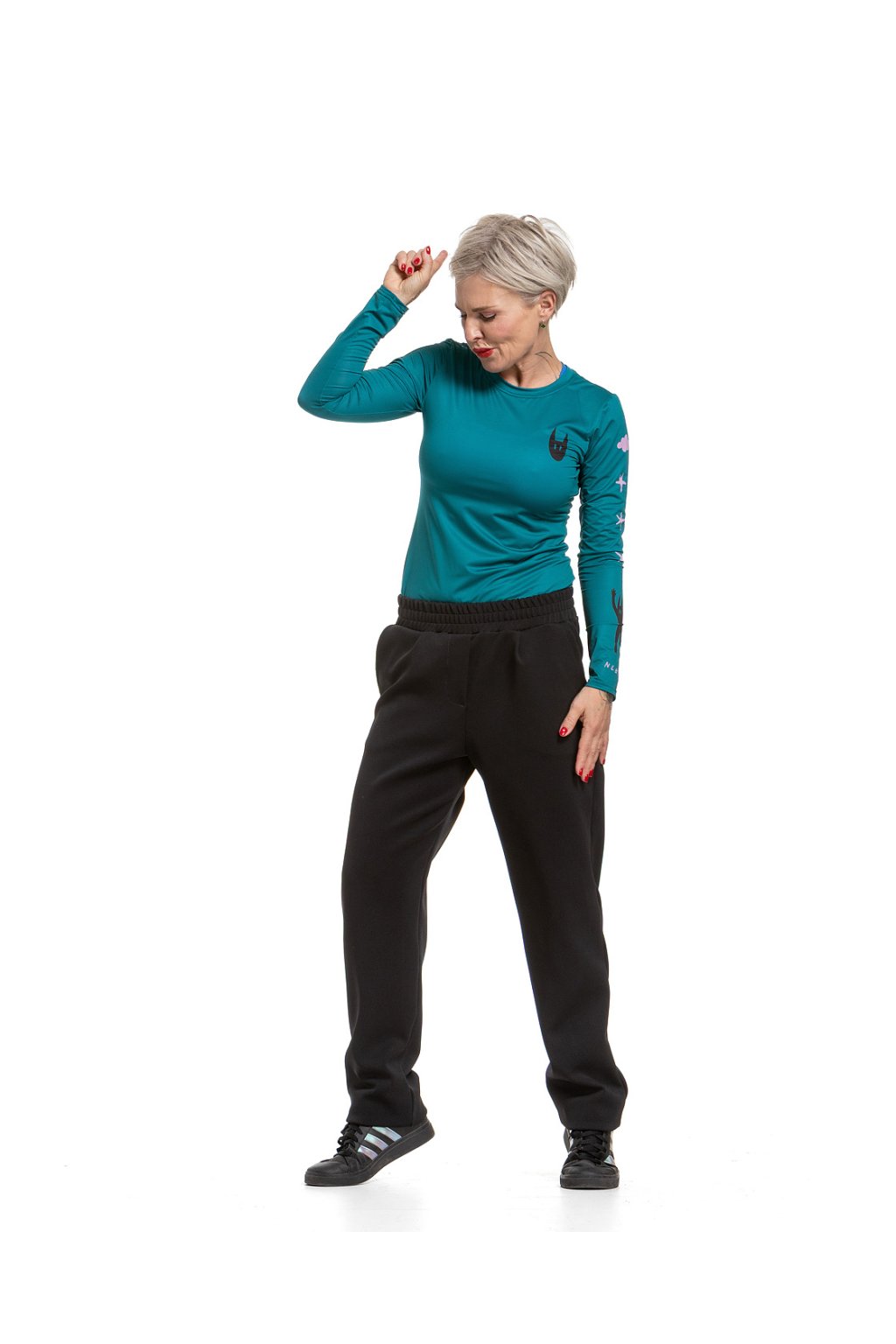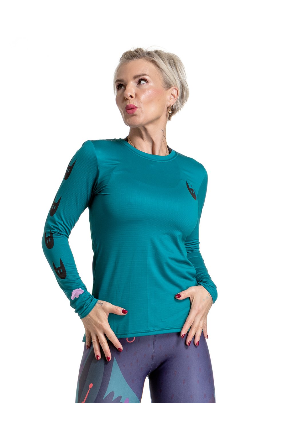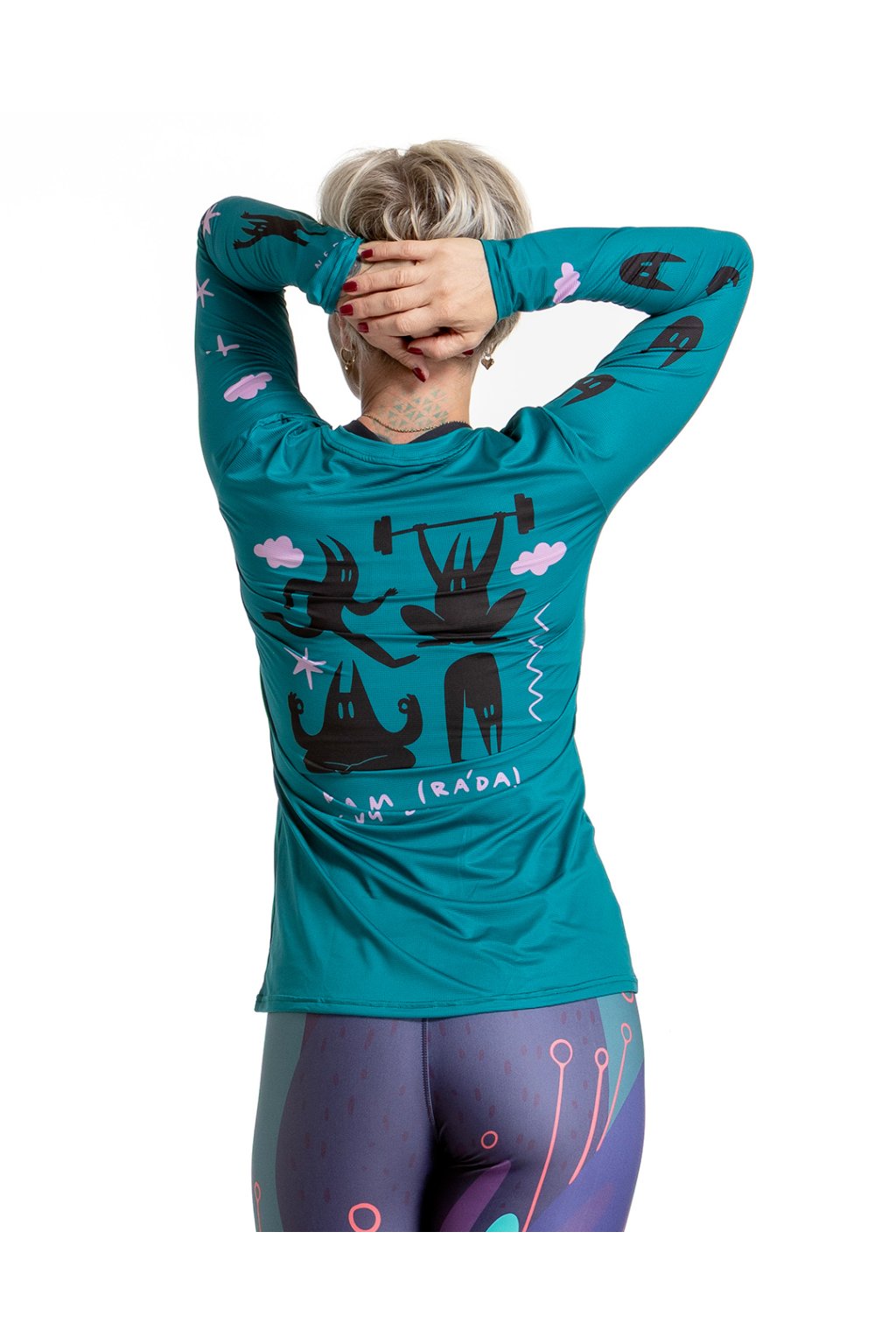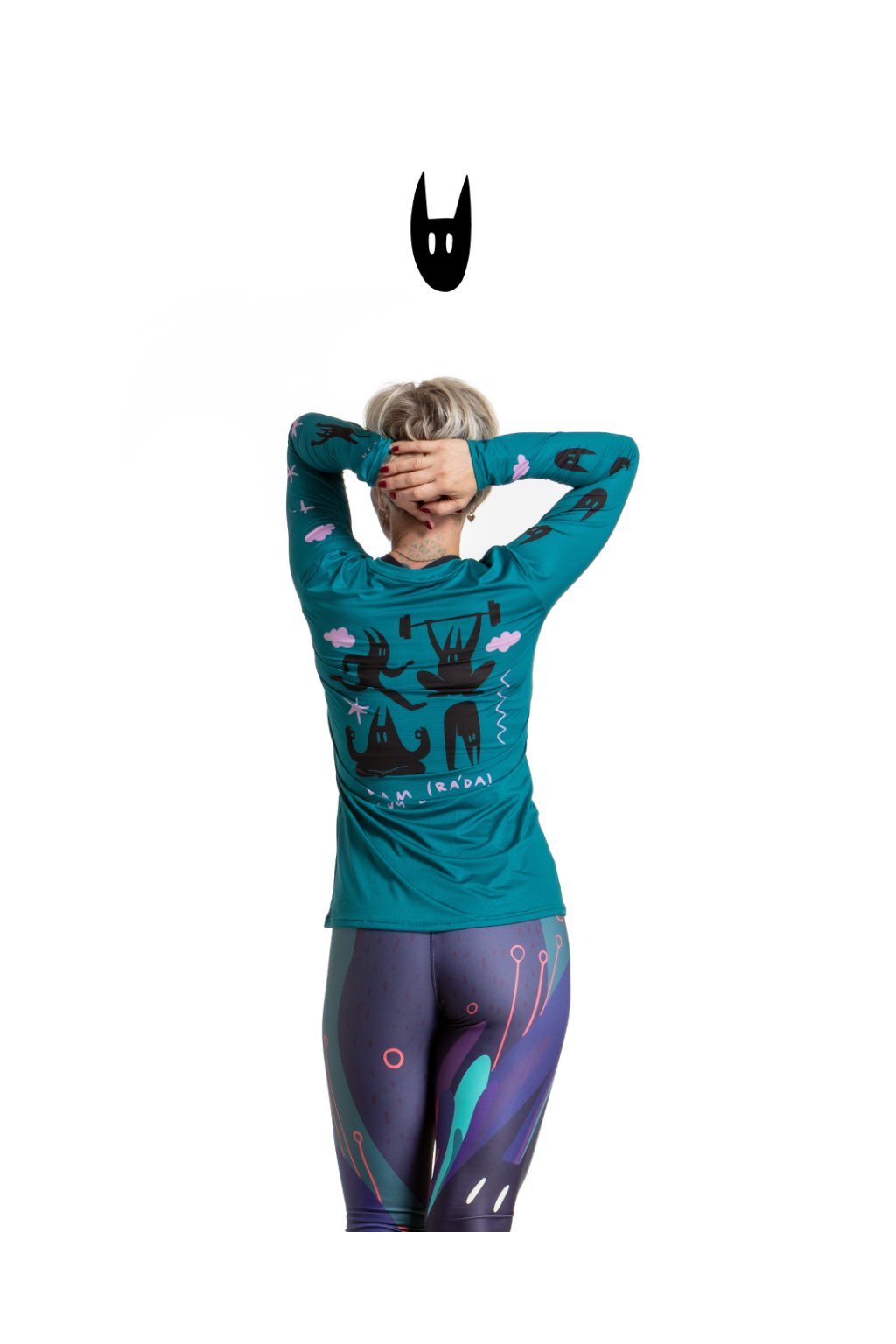 Tohle fitness tričko s dlouhým rukávem jsme navrhly a ušily pro všechny akční holky, které se nebojí vyčnívat z řady. Ať už v něm vyběhneš do parku, sedneš na kolo, nebo skočíš na brusle, bude tě držet v suchu a pohodlí. Materiál, ze kterého jsme ho ušily, jsme na trhu hledaly několik měsíců, a když jsme ho konečně našly, rok jsme ho při běhání po Brně testovaly. Radost ti nebude dělat jen funkčním materiálem, ale taky svým střihem a designem. Navrhla ho brněnská umělkyně Petruccya a ušily ho české švadlenky. Jo a dost dobře vypadá k džínám a pod sakem, *mrk mrk*.