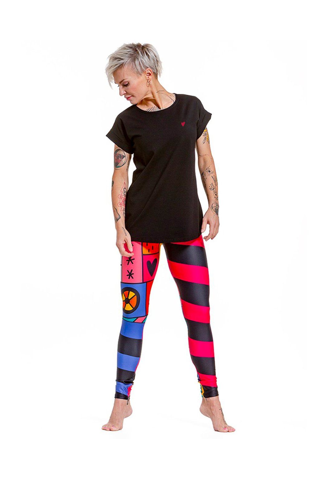 Tričko jsme ušily tak, aby sedělo malým, velkým, vysokým i nízkým, a vyrobily jsme ho z bavlny a elastanu, aby se v něm dobře cvičilo i válelo. Ušily jsme ho pro tebe ve více barvách, abys ho mohla kombinovat dle libosti se vším, co máš v šatníku.