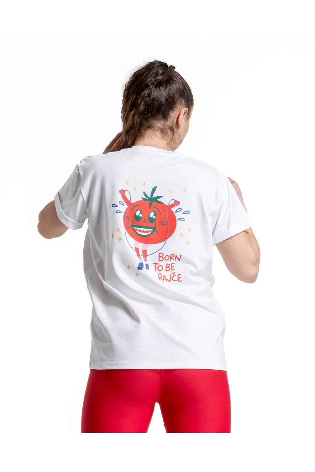 Jsi taková ta superžena, která může vyběhnout na Sněžku, udělat dvacet kotrmelců a sto kliků, aniž by se jí v obličeji změnil odstín na aspoň o trochu růžovější? My taky ne, a to je dobře. Aspoň na nás okolí vidí, že makáme, no ne? A právě pro takový holky, jako jsme my, jsme ušily oversize tričko s potiskem BORN TO BE RAJČE, který navrhla skvělá umělkyně Hypochondra. Popisovaly bychom ti ho dál, ale mrkej sama… boží, ne? He he!