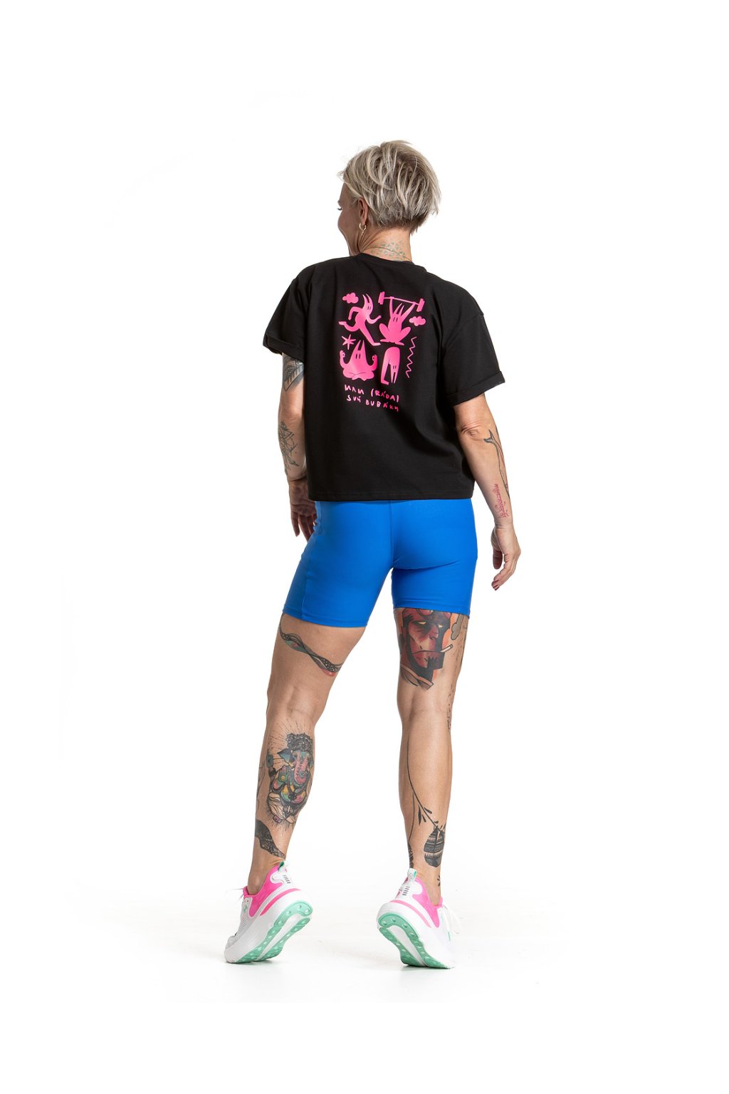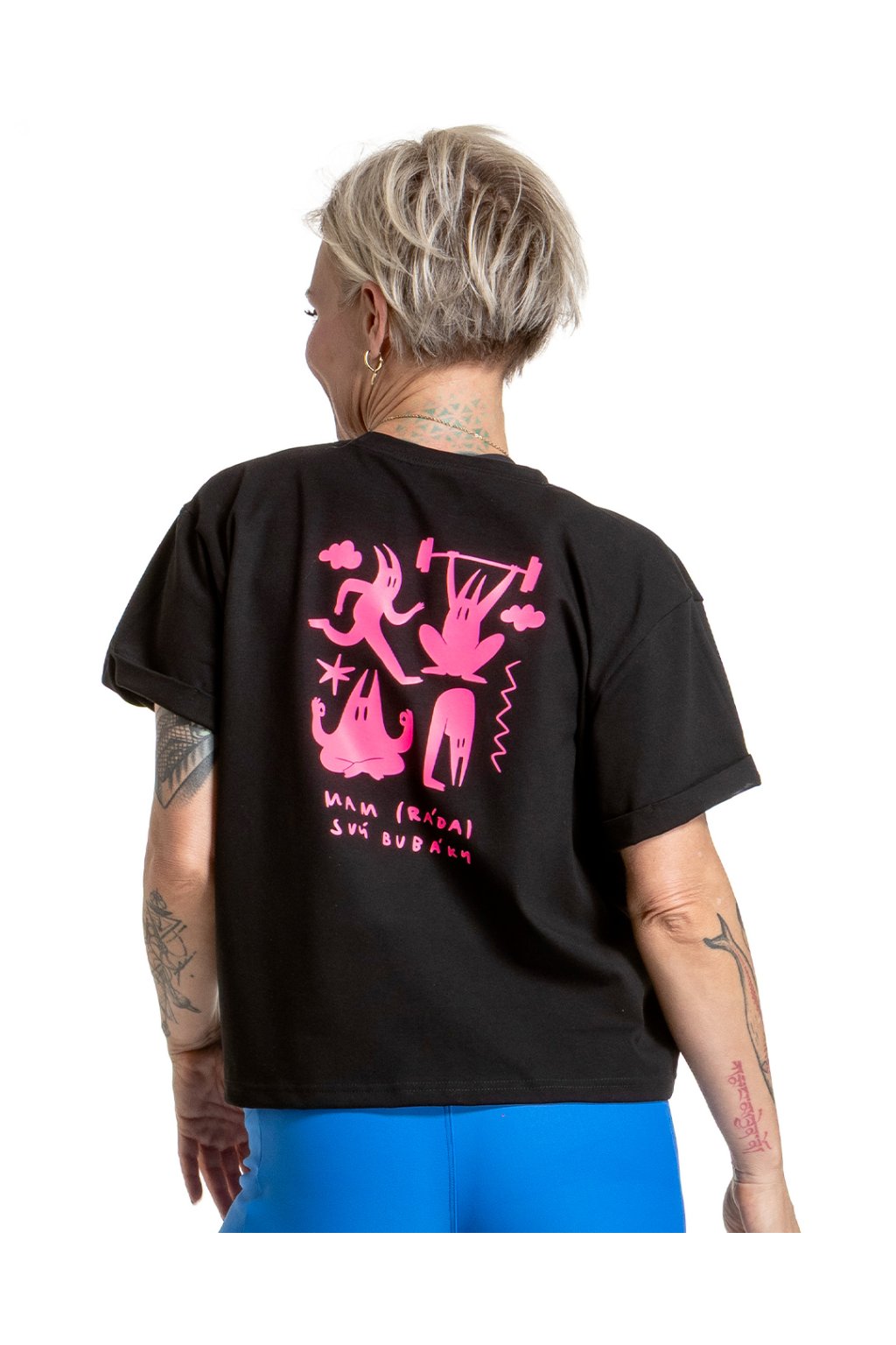 Vtipné dámské tričko s potiskem jsme ušily oversized, unisize a v crop střihu. Sedět bude všem postavám do velikosti L/XL. Materiál tě bude bavit – je to totiž bavlna (95 %) ve vyšší gramáži a trocha elastanu (5 %), takže na těle bude faaakt příjemné.