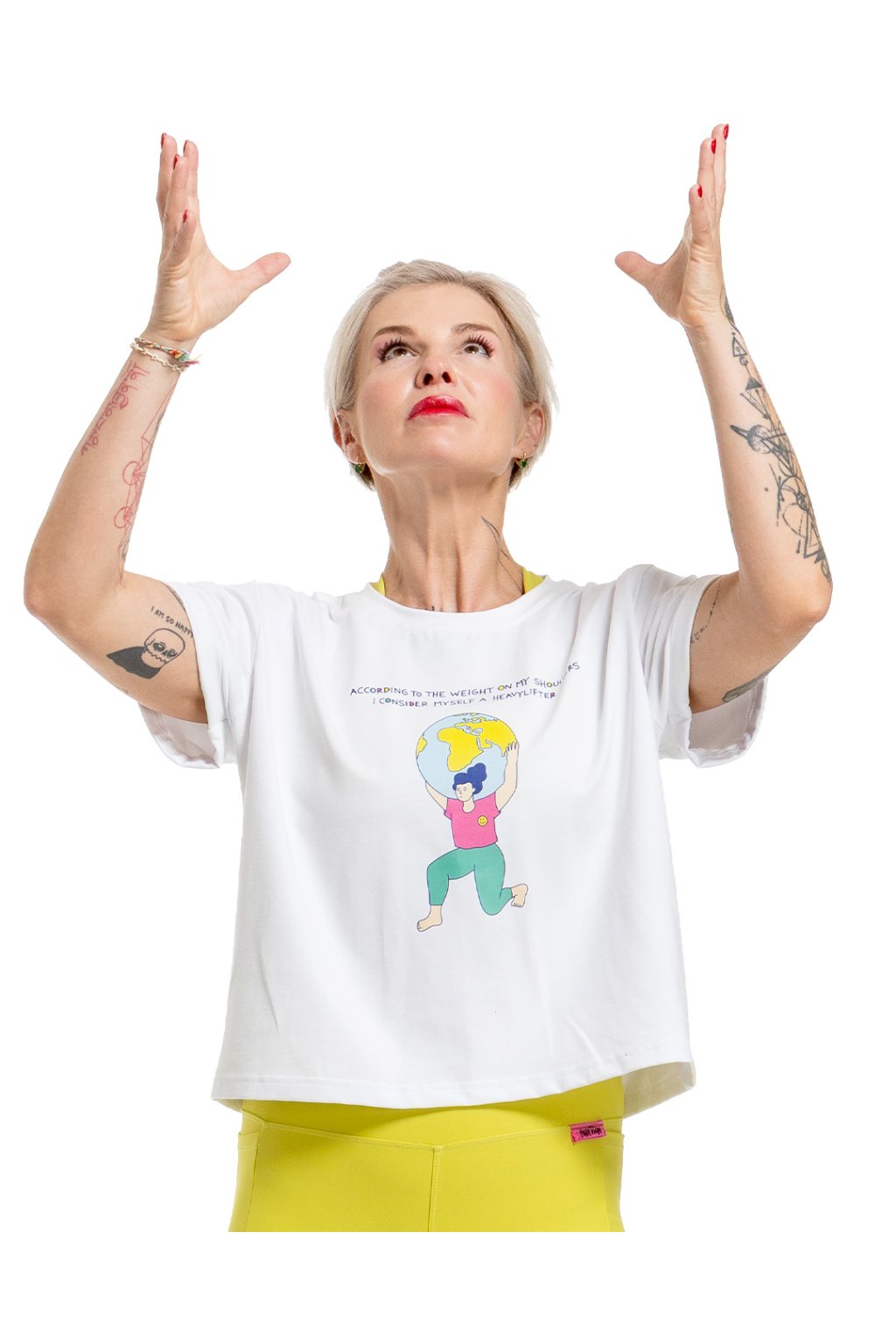 Vtipné dámské tričko s potiskem jsme ušily oversized, unisize a v crop střihu. Sedět bude všem postavám do velikosti L/XL. Materiál tě bude bavit – je to totiž bavlna (95 %) ve vyšší gramáži a trocha elastanu (5 %), takže na těle bude faaakt příjemné.