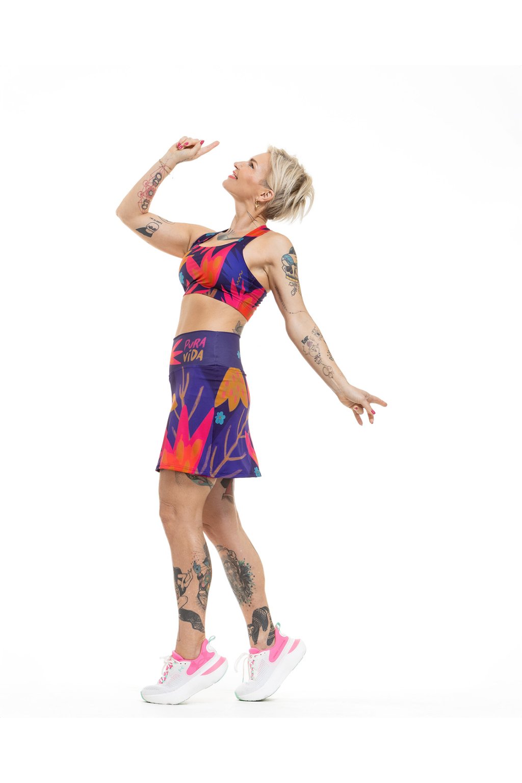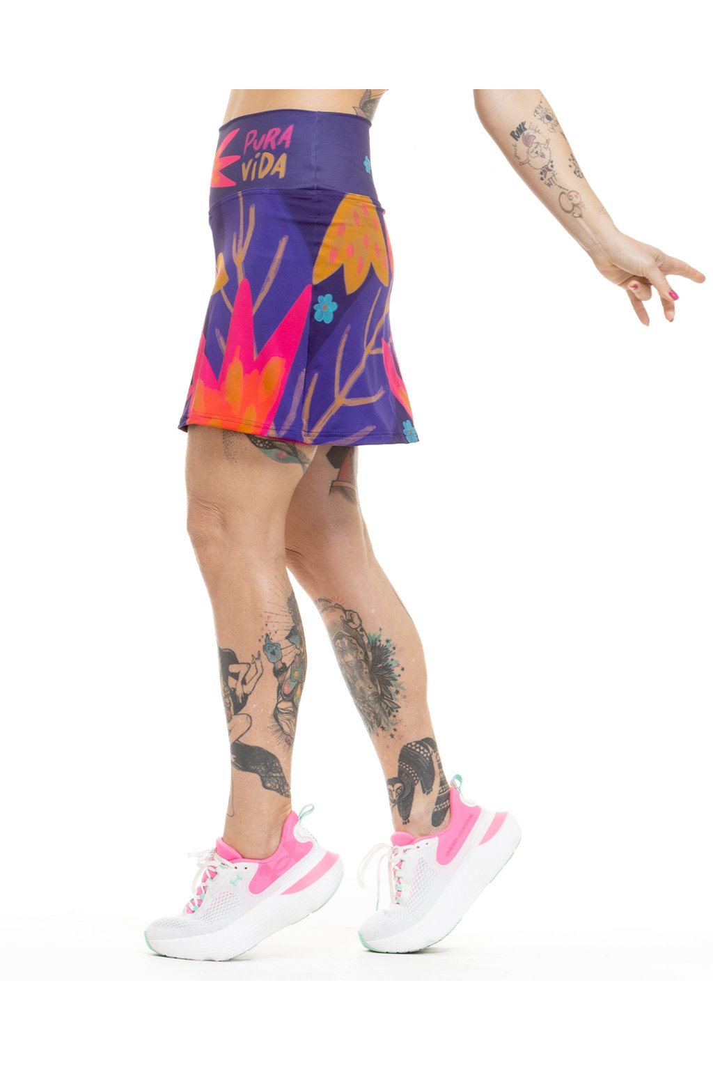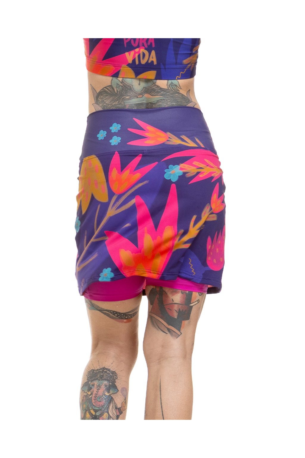 Sukně má vysoký pas a všité kraťásky, ve kterých najdeš kapsy, takže o vše důležité bude postaráno. Šijeme ji z lehkého, příjemného materiálu (82 % polyamid, 18 % elastan), a to ve velikostech XS/S, S/M a M/L.