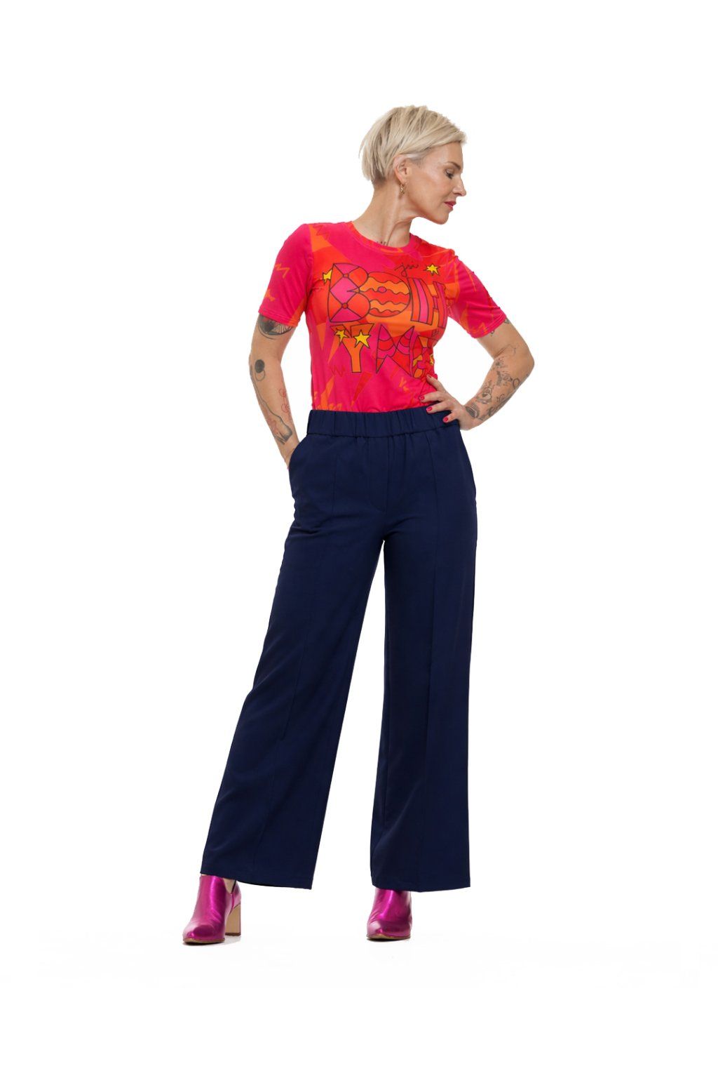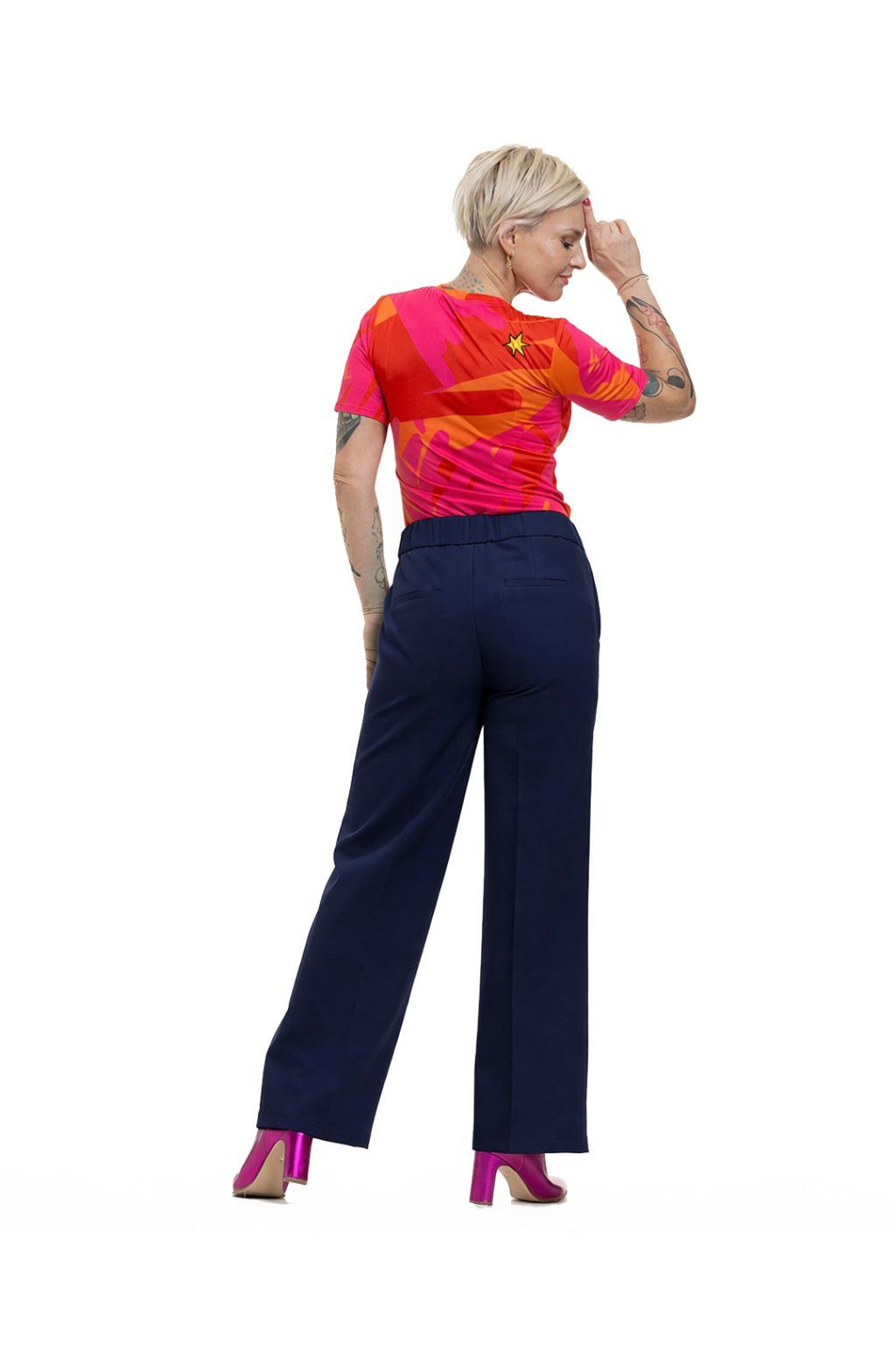 Elegantní kalhoty z příjemného materiálu (88 % polyester, 12% elastan) ideální na jarní dny. Stylovat je můžeš jak sportovně, tak klidně do business casual. Nadčasový design a pohodlný střih má na svědomí brněnská umělkyně Petruccya, kalhoty za férových podmínek ušily české švadlenky.