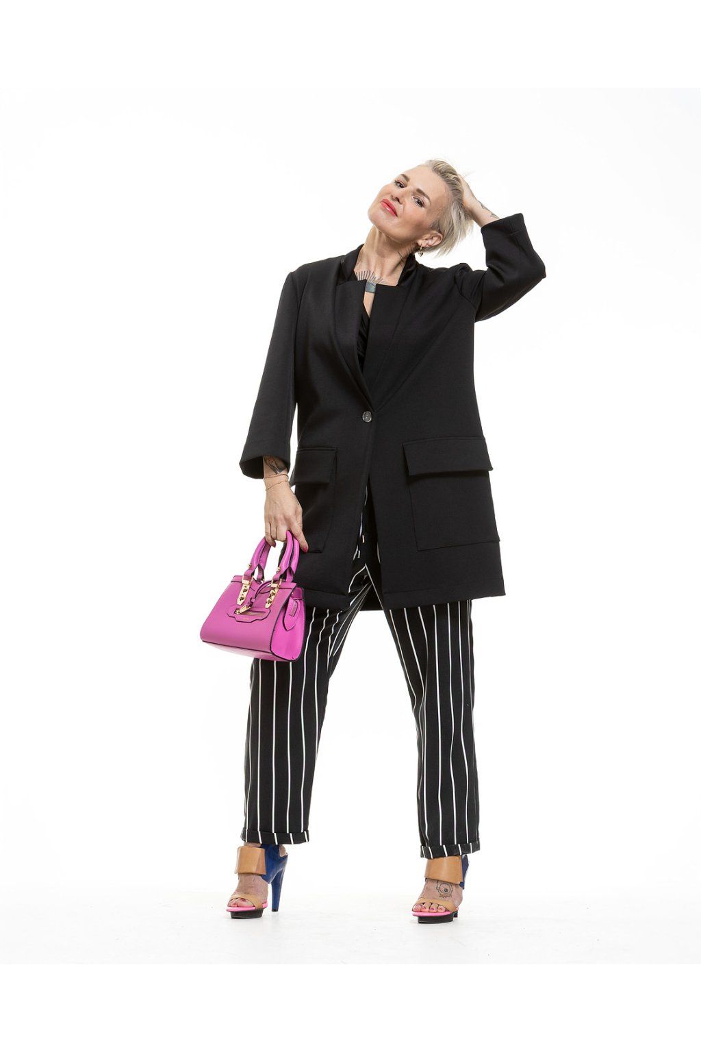 Tyhle volný kalhoty s proužkem jsou ztělesněním pojmu městská elegance. No fakt, vidíš? Vyrábíme je v pohodlném střihu s vysokým pasem, z příjemného materiálu (bavlna/elastan), a navíc jsou na gumu, takže se do tebe vejde víc kopečků zmrzliny. Jsou super na běžné nošení, ale zvládnou i business casual. Navrhla Petruccya, ušily české švadlenky.
