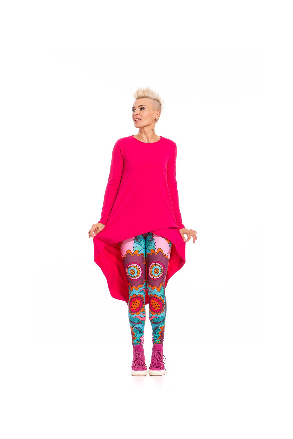 Tyhle legíny vznikaly opravdu dlouho. Nejdřív je navrhla a ručně nakreslila brněnská umělkyně Petruccya. Vedoucí výroby Péťa na ně pak našla tu nejlepší látku a náš tiskař Michal na ně natiskl tenhle boží vzor. Jakmile je naše švadlenky ušily, uložily jsme je na poličku, kde na tebe a dalších 598 holek čekají. Víc jich totiž nemáme, je to jedna z našich limitek. A až si je objednáš, Anička s Lenkou ti je s láskou zabalí a pošlou.