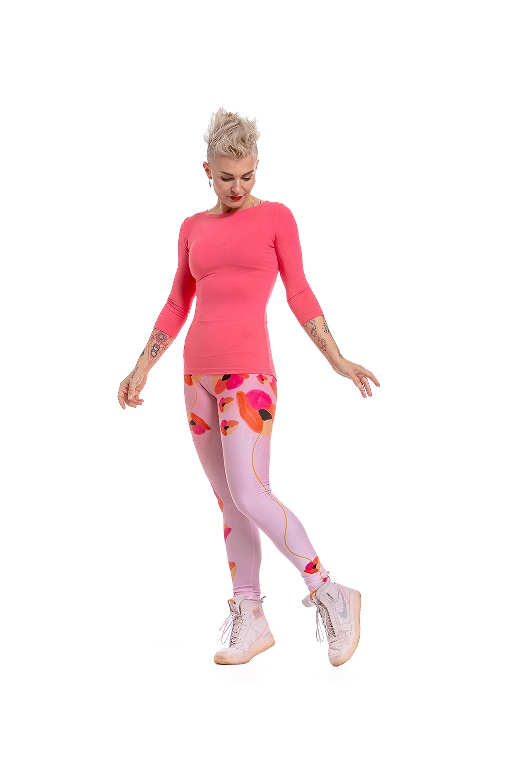 Tyhle sportovní legíny jsme ušily z vysoce kvalitního, rychleschnoucího funkčního materiálu. Je měkký, flexibilní a poddajný. Nebudeš si připadat jako v korzetu, ale i přesto ti při běhu nebudou legíny sjíždět a při józe se nebudou nikde zařezávat. Materiál je ideální na pomalé sporty, protože tě příjemně obepne, ale nestáhne. Díky tomu budou z tohohle matroše nadšené i holky po císařském řezu. Pas legín je totiž nebude stahovat a tlačit, a zároveň nabídne pro bříško dobrou oporu.