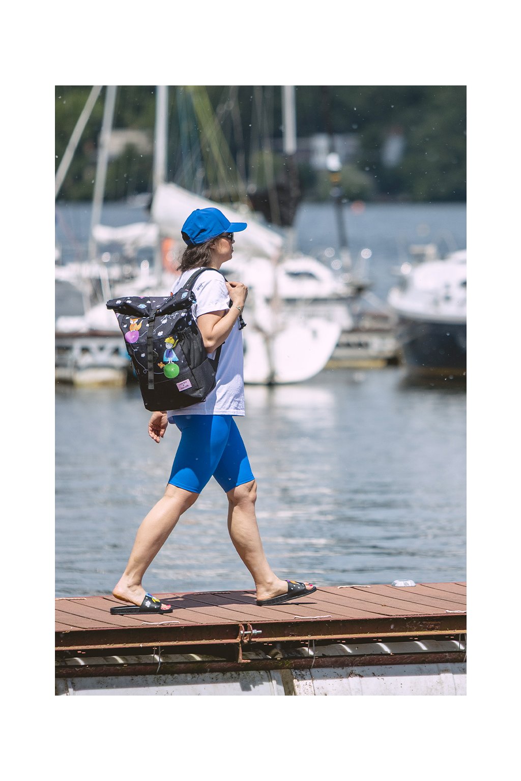 Tenhle batoh unese všechno, co potřebuješ! Má prostornou hlavní rolovací komoru, kterou po srolování zavřeš na suchý zip a stahovacím popruhem. Uvnitř hlavní komory je zipová kapsa a polstrovaná přihrádka, do které se ti vejde notebook (13,3”) a kterou zavřeš přezkou na suchý zip. Vepředu je kapsa na zip s aplikací loga, po straně pak dvě další kapsy – jedna na zip, druhá otevřená síťová.