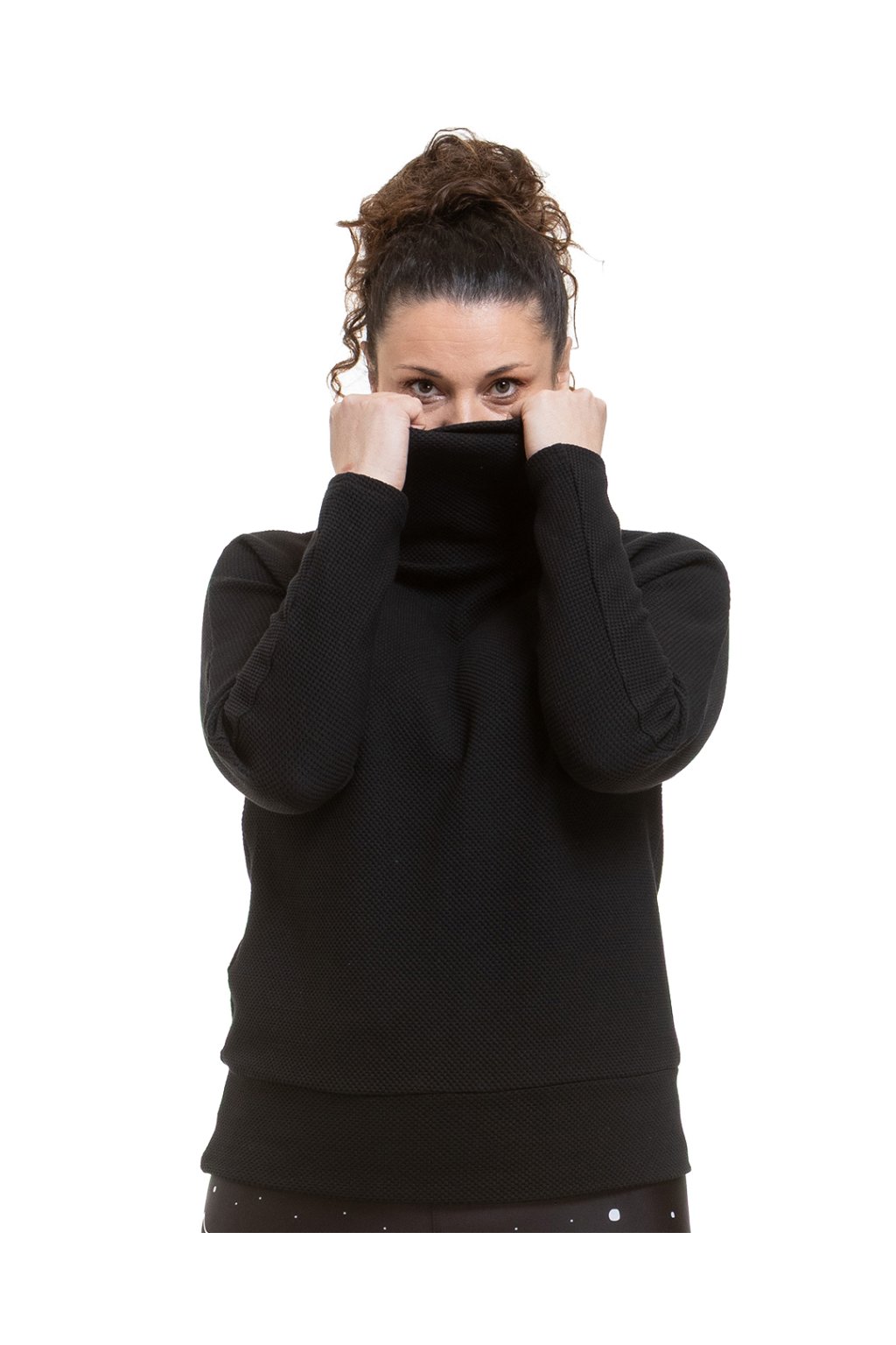 Mikina je ze zajímavého nopkovaného materiálu, který ze zdánlivě prostého kousku udělá něco jedinečného. Základ materiálu tvoří bavlna (65 %) s příměsí polyesteru (27 %) a elastanu (8 %). Díky elastanu je mikina krásně poddajná a příjemně pruží. Zúžený spodní lem mikiny se zasekne pěkně na bocích, čímž dá vyniknout tomu, jak je střih v oblasti trupu a bříška vzdušný. Třešničkou na dortu je elegantní rolákový límec a zdobný štítek z washpaperu s logem Pura Vida za krkem. My osobně se v téhle naší mikče cítíme pěkně nóbl, takže ty budeš určitě taky. Vsadíme boty!