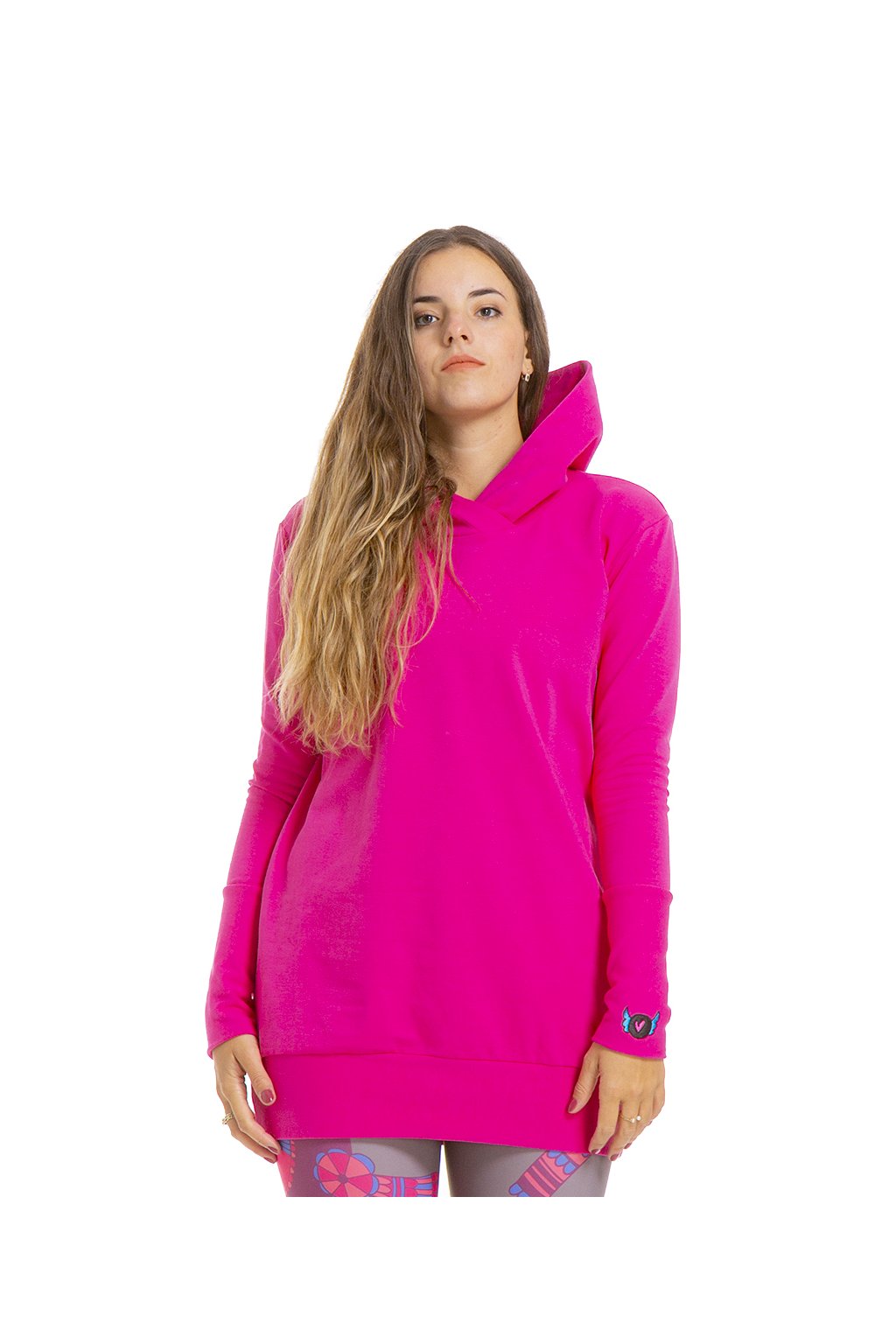 Tuhle mikinu s kapucí můžeš zkombinovat s legínama, džínama, šatama, kraťasama i sukní. Nejvíc na ní milujeme to, že se do ní dá kdykoliv zachumlat a schovat, třeba před celým vesmírem. Stačí stáhnout prodloužené rukávy, nasadit kapuci a je to. Můžeš ji dokonce stáhnout až pod boky, takže ti v ní neofoukne záda a zadek, což se vždycky hodí.