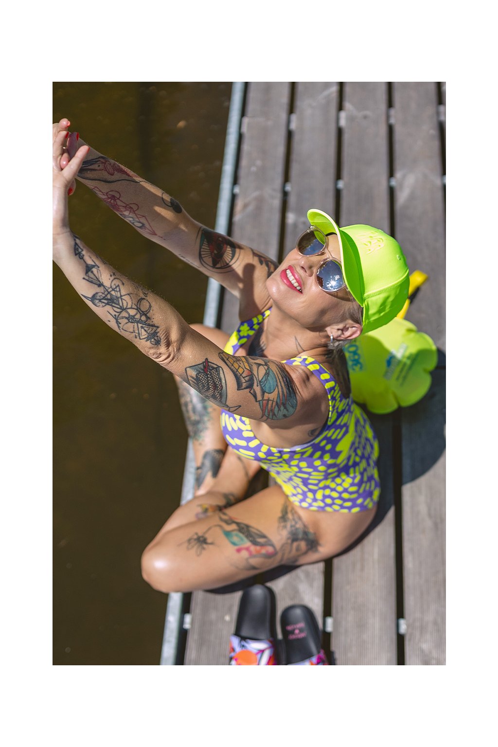 Design BĚHNA je jedním z našich nejdravějších designů. Srší z něj energie, odhodlání a notná dávka síly. Byl to původně běžecký vzor, který se díky své oblíbenosti postupně přetavil i na zcela neběžecké produkty, název mu nicméně zůstal. A tak nyní můžeš být běhnou i pod vodní hladinou. Tyhle plavky z kvalitního funkčního materiálu tvůj obojživelný potenciál ještě umocní. Jsou střižené tak, aby ses v nich mohla svobodně hýbat u vody i v ní a to zcela bez obav, že ti někde něco vykoukne. Přední dál plavek jsme podšily, použily jsme na to příjemnou dresovinu. Díky tomu plavky neprosvítají a mohou ti nabídnout ještě větší pocit pohodlí, opory a o špetku uhlazenější vzhled.