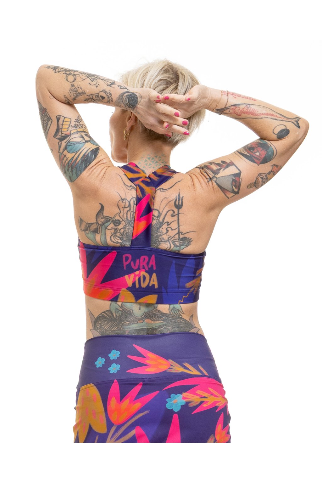 Tahle podprsenka je z vysoce kvalitní funkční látky vyrobené ze stoprocentně recyklovatelného materiálu – je v ní (44 % polyamid, 37 % polyester, 11 % elastan). Díky polyesteru je materiál příjemně kompresní a odolný vůči oděru, elastan zase zajistí, že se podprsenka snadno nevytahá, drží tvar a skvěle kopíruje postavu. Vlákna mají hydrofilní úpravu, takže dobře odvádějí pot od těla.