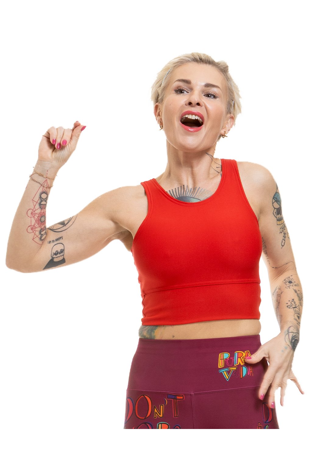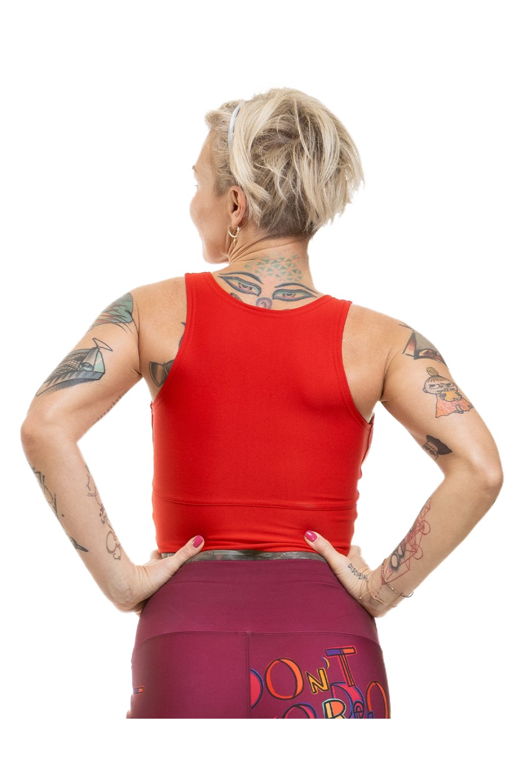 Sportovní dámský top šijeme z oblíbeného materiálu (44 % polyamid, 37 % polyester, 11 % elastan), který je příjemný na kůži, a to ve velikostech S–M. Není vyztužený a nemůžeš si do něj umístit vlastní vycpávky, a tak není vhodný pro velká prsa. Fitness crop top šijeme se širokými ramínky, aby tě nikde nic neřezalo, a přidáváme široký spodní lem, který krásně přilne k tělu a obepne hrudní koš. Kombinuj ho s legínami, džíny nebo sukní! Top je navržený i ušitý eticky, v Česku.