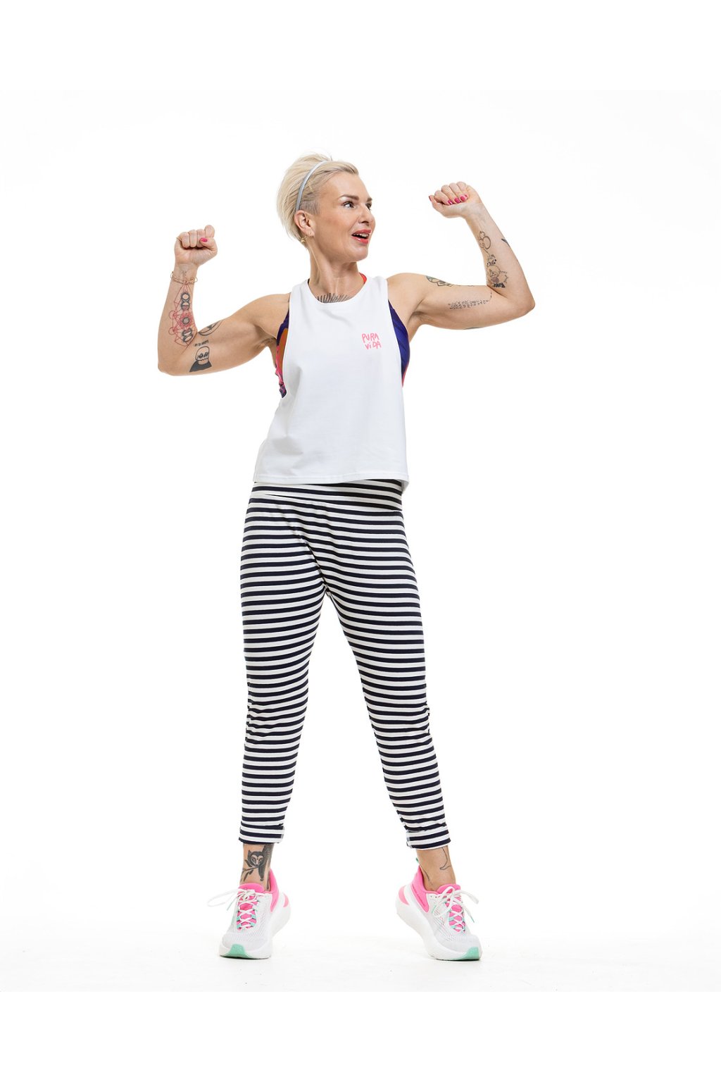 Každé tepláky musí být pohodlné a zároveň pružné, aby nám v nich bylo dobře na gauči, jógamatce i na parketu. Proto jsme tyhle ušily z bavlny s malou příměsí elastanu. Můžeš v nich díky tomu odpočívat i cvičit, aniž by se vytahaly. Ideální volba pro ty holky, které nerady cvičí ve funkčních materiálech.