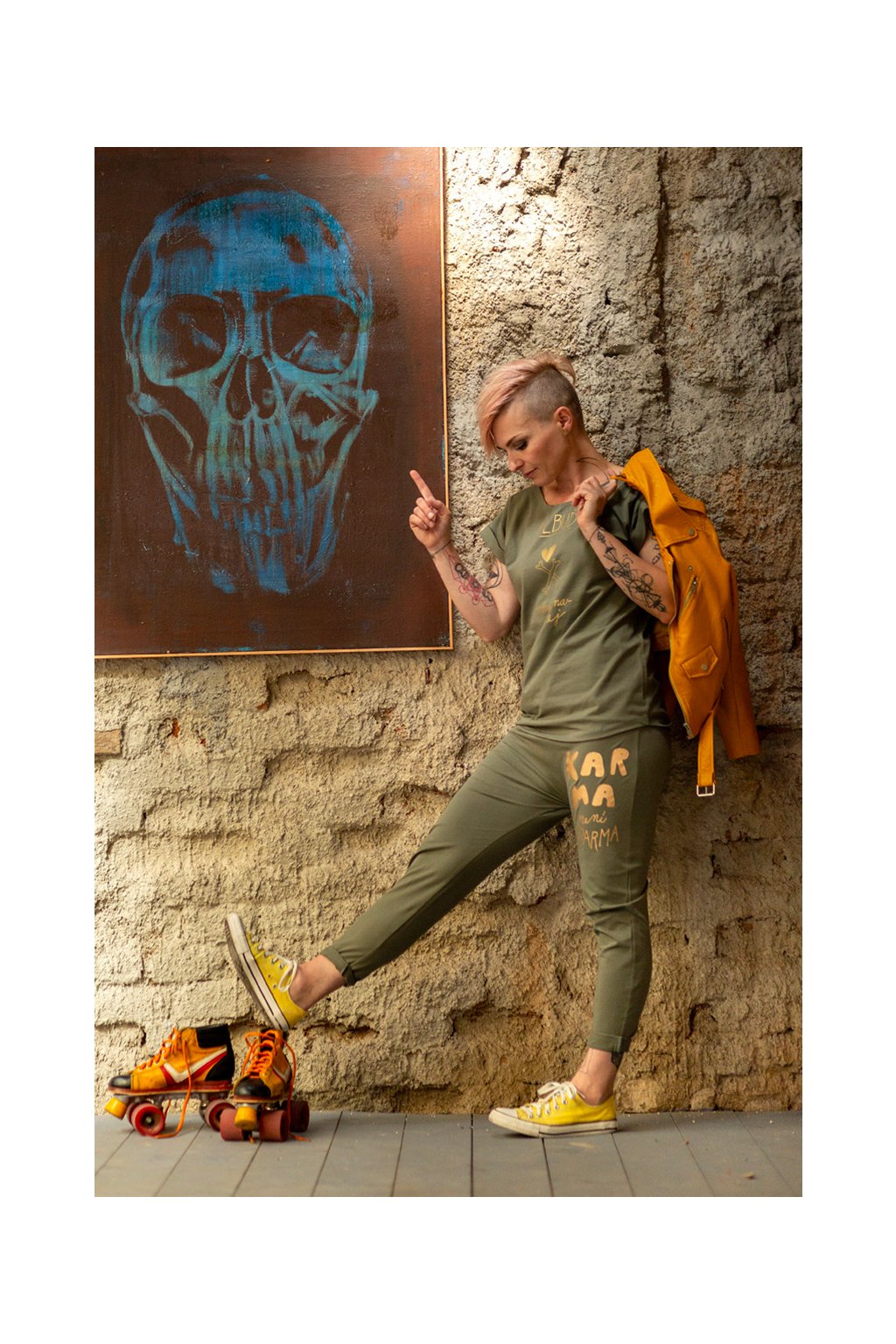 Tepláky KARMA NENÍ ZDARMA khaki